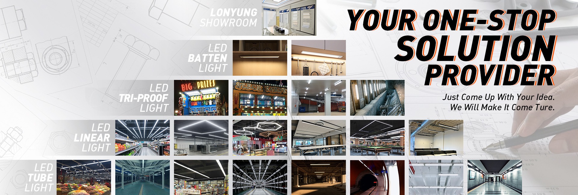 Produk utama: Tabung LED terintegrasi/lampu tri-proof LED/lampu Teluk tinggi LED/lampu Linear LED