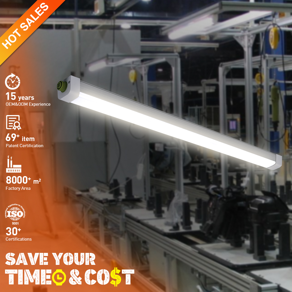 หลอดไฟ LED เชิงเส้น40W 60W 4ft 8FT คู่ไฟ LED แบบเชื่อมได้หลอด T5 6000K สำหรับคลังสินค้าซูเปอร์มาร์เก็ตสำนักงาน